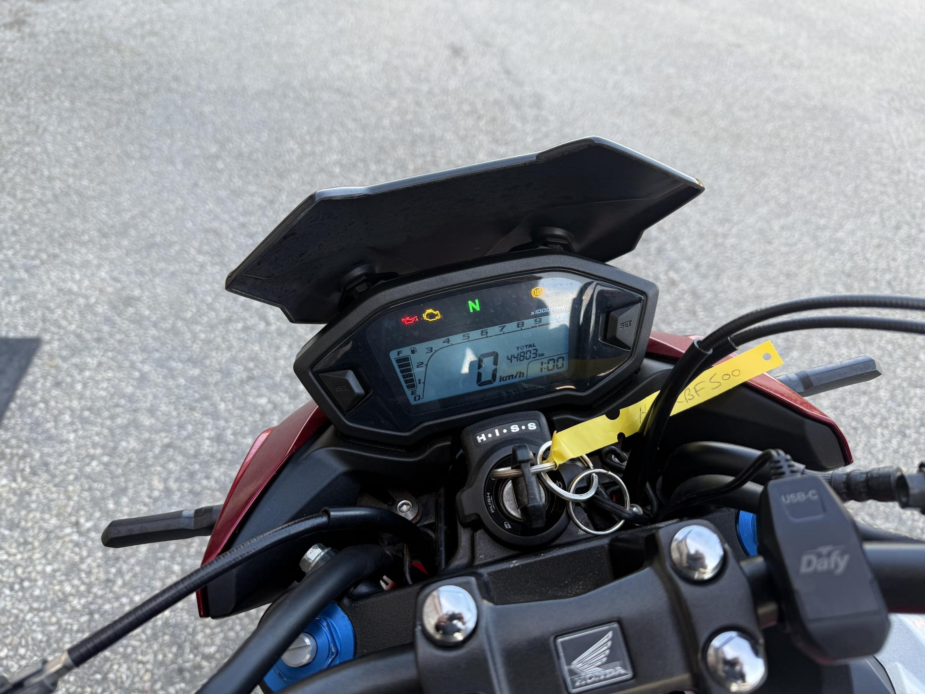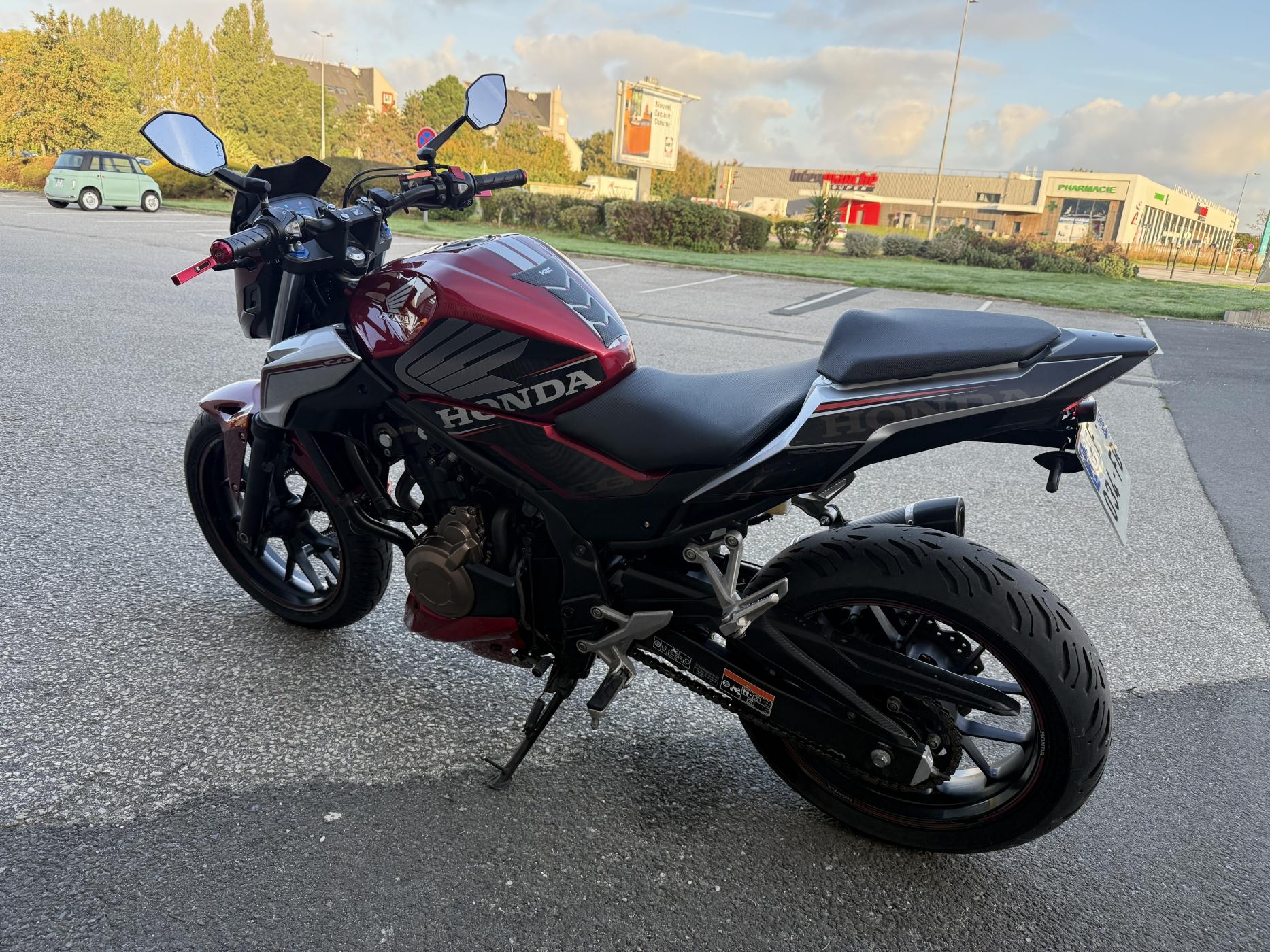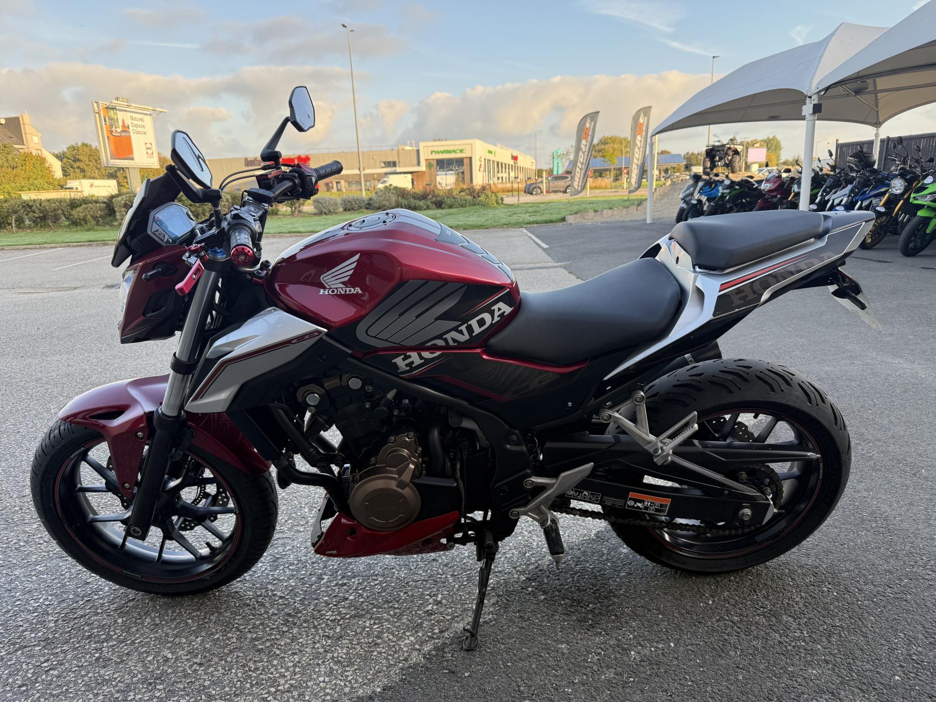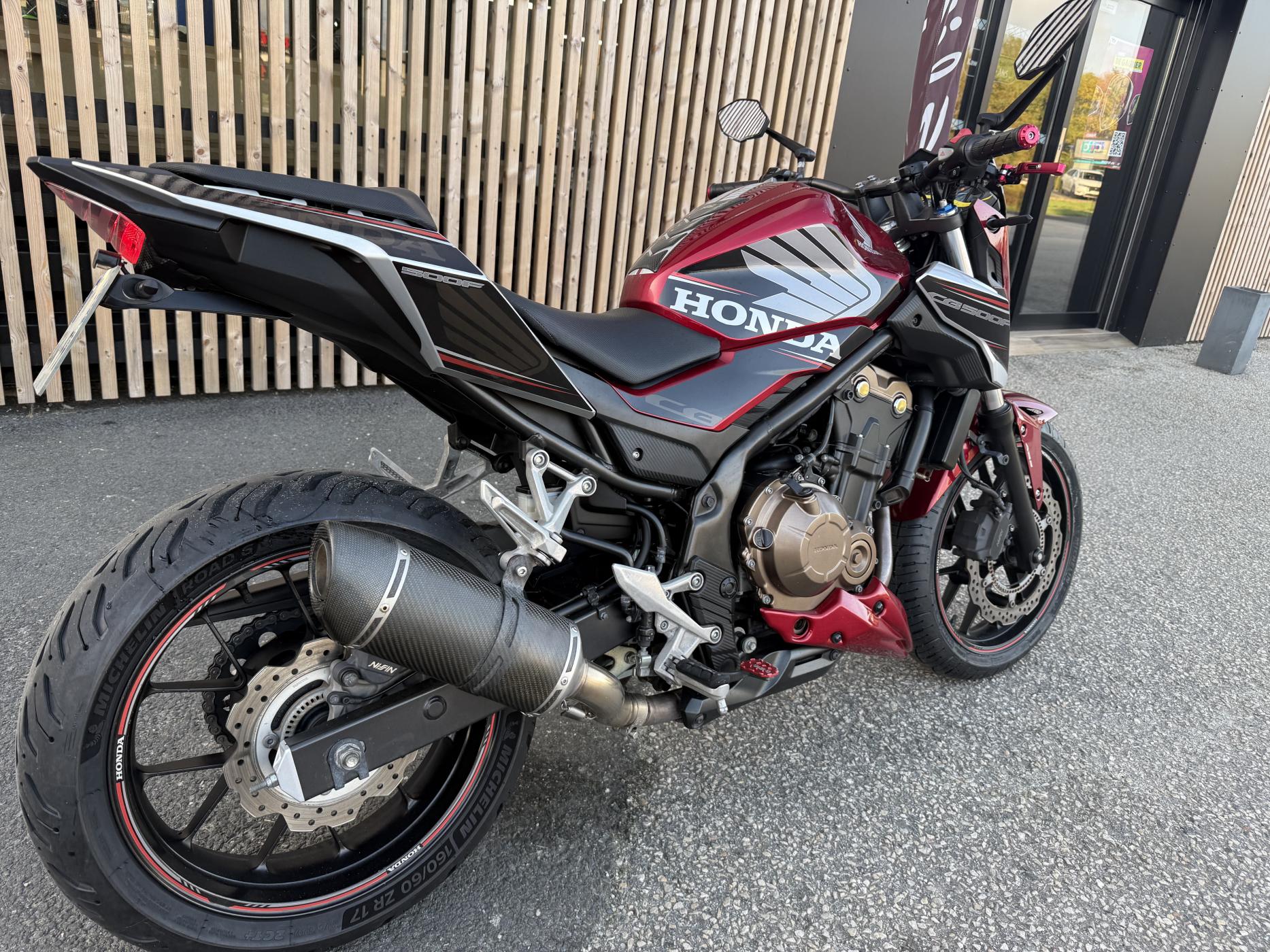 ---------- | Informations du Véhicule | ---------- Marque : HONDA Modèle : CB500 F A2 Année : 2019 Kilométrage : 44973 KM Carburant : ESSENCE Couleur : ROUGE ---------- | Équipements | ---------- Le véhicule est équipée de : - Prise usb-c - silencieux Léo vince - support de plaque court ---------- | Garantie | ---------- Une garantie est disponible pour 1... |