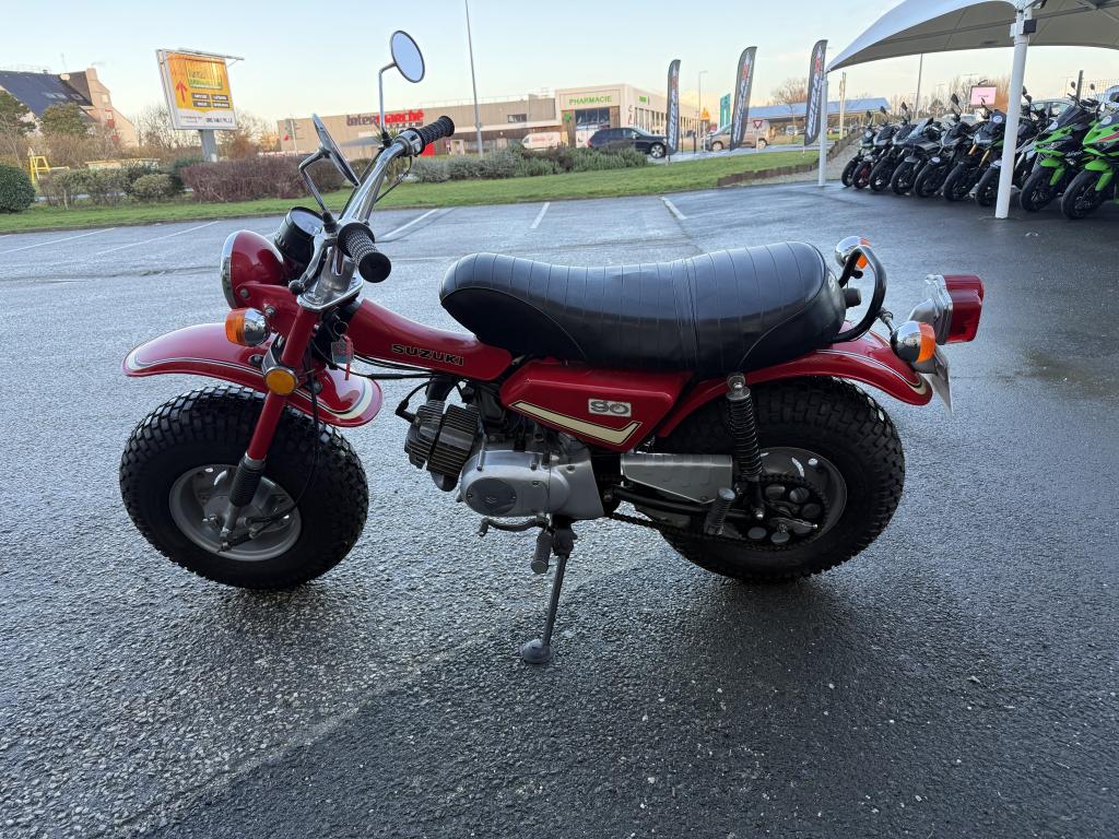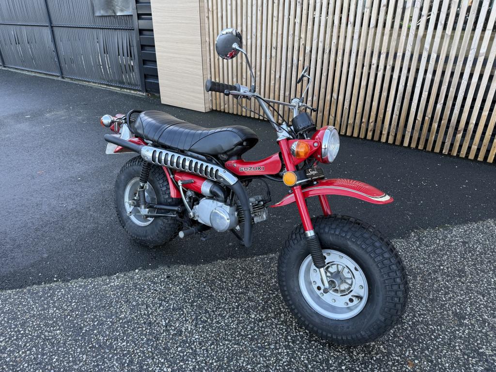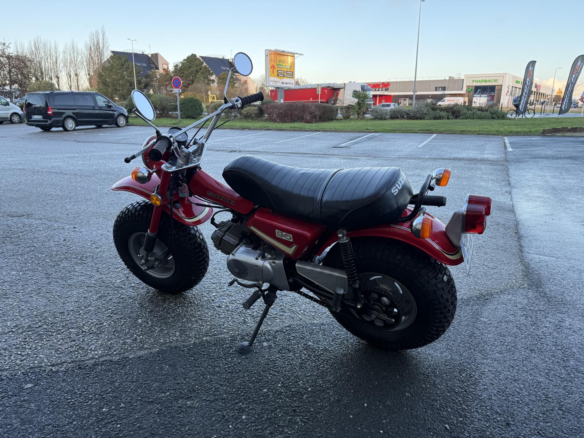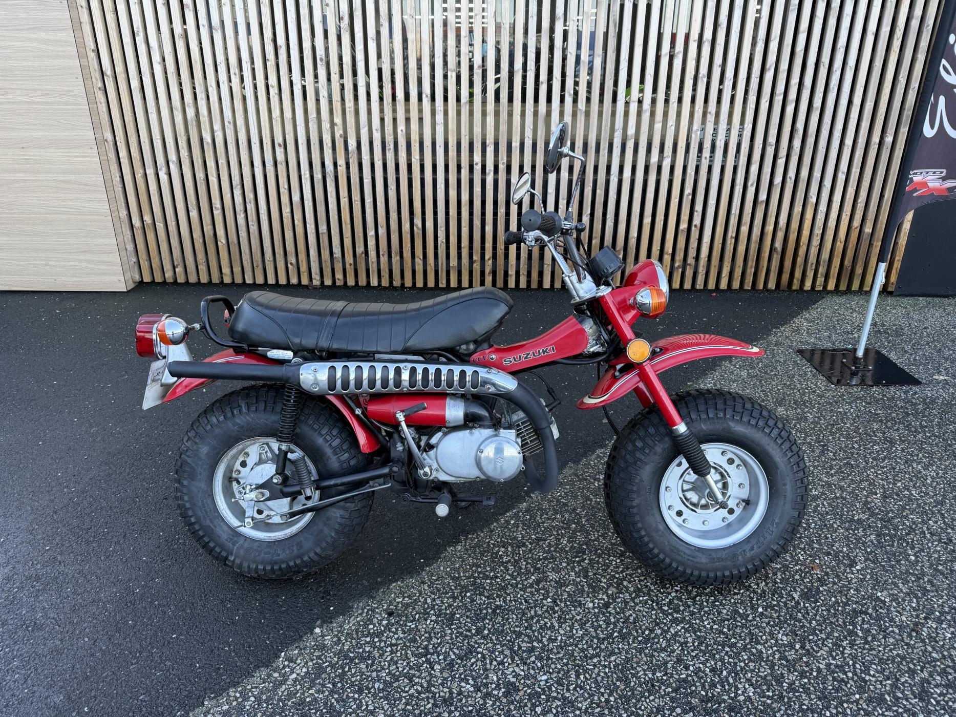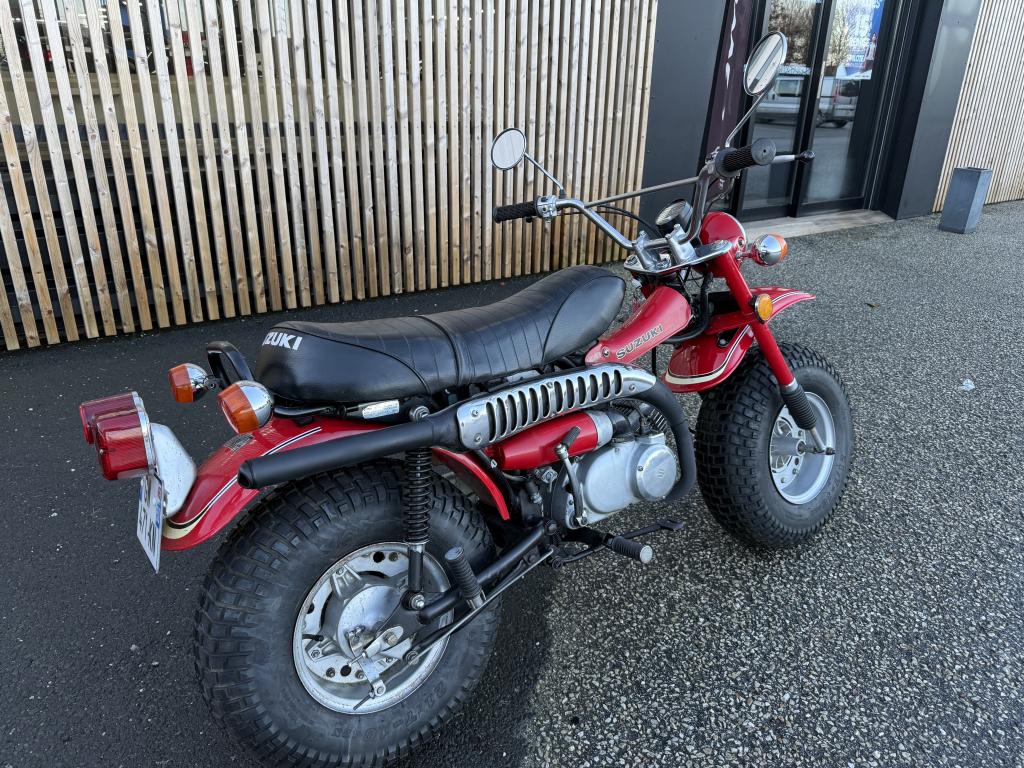 ---------- | Informations du Véhicule | ---------- Marque : SUZUKI Modèle : VANVAN 90 Année : 1973 Kilométrage : 6339 KM Carburant : ESSENCE Couleur : ROUGE ---------- | Équipements | ---------- Le véhicule est entièrement d'origine ---------- | Entretien | ---------- l'entretien est à jour, rien à prévoir ---------- | Livraison | ---------- La li... |